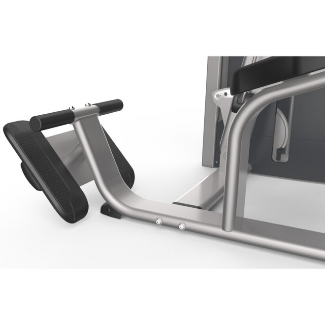 - Фиксирующая ножная подставка помогает атлету занять правильную позицию на снаряде.