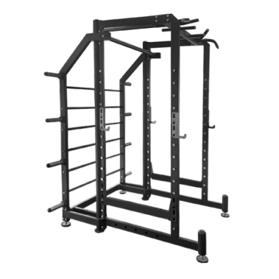 Силовая рама для приседаний AL-314 от BRONZE GYM имеет надежную и прочную конструкцию, которая включает в себя страховочные ограничители (шаг регулировки высоты страховочных упоров – 60 мм) и съемные крюки для грифа. Также, для занятий без штанги предусмотрены турники с многопозиционными хватами и зацепы для подтягиваний. Изделие подходит для пользователей различного роста и телосложения. На задних стойках рамы расположены 8 держателей для стандартных олимпийских дисков. Задняя часть рамы, для большей функциональности, оснащена «шведской стенкой», которая увеличивает жесткость конструкции и служит дополнительной зоной для растяжки. Рама для приседов с профилем основной станины 80x40x3 мм. По всему периметру конструкции установлены прорезиненные подпятники, выполняющие роль компенсаторов неровностей пола. Возможен двухцветный порошковый окрас. Для полноценного коммерческого использования.