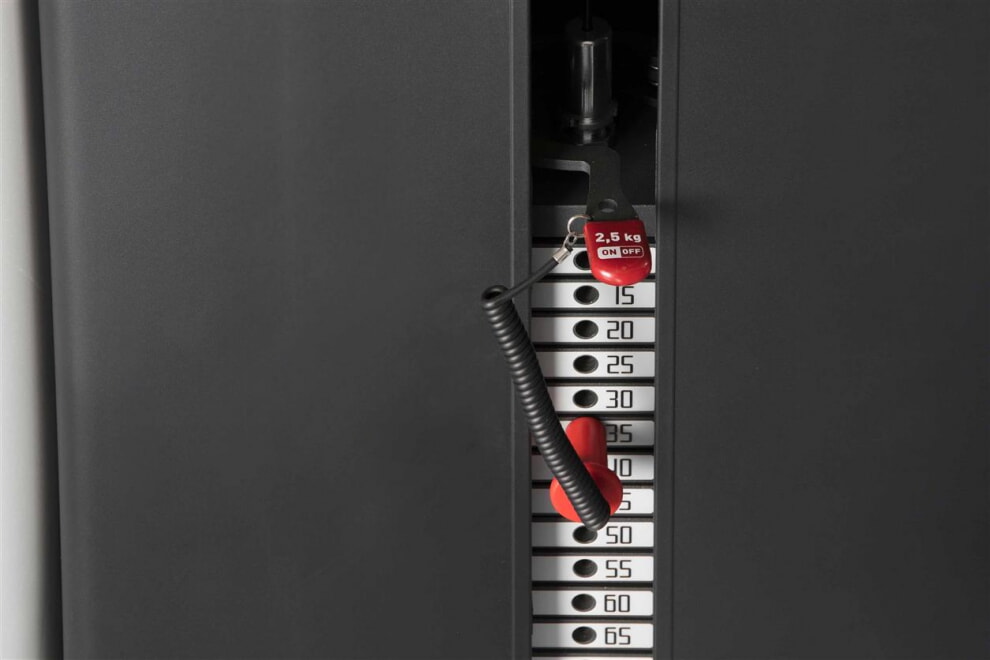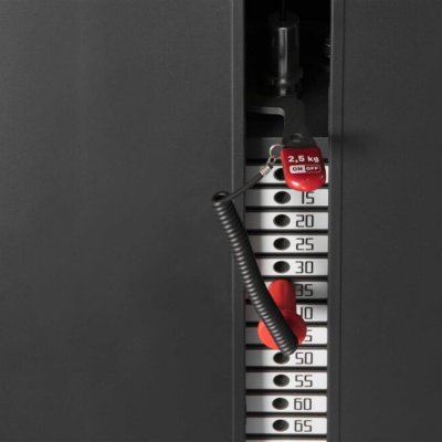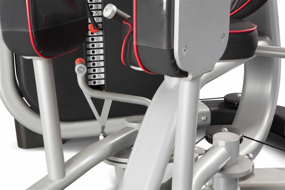 Прекрасный тренажер для проработки отводящих мышц бедра. Для выбора веса предусмотрен магнитный штифт. Кожух из гофрированного ABS пластика защищает весовой стек, а на специальную графическую таблицу нанесены инструкции, а также QR-код и ссылка на видео с тренировками. Прогрессивное увеличение нагрузки имеет шаг 2,5 кг, есть встроенная подставка для различных вещей. Амплитуда движения имеет настройку угла начала движения. Цвет обивки по умолчанию - красный, другие цвета доступны опционально.