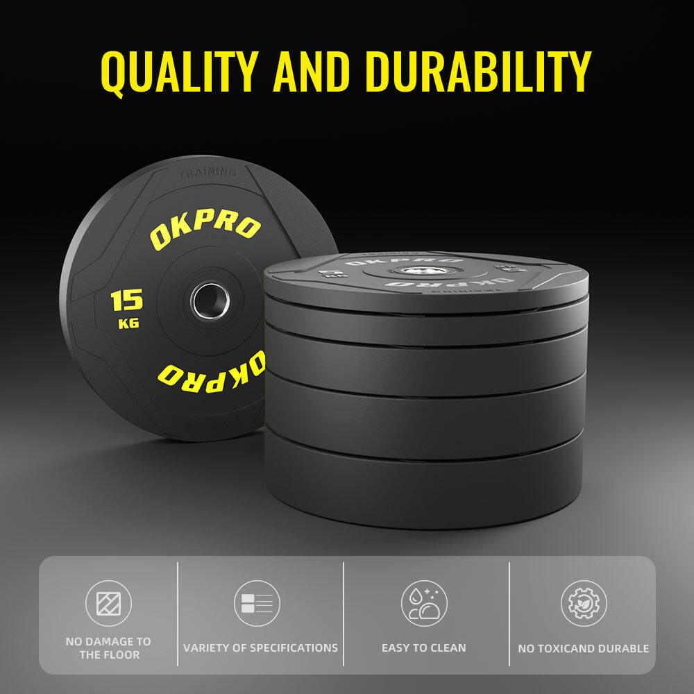 Предоставьте разнообразие весовых характеристик дисков для штанги, от легких разогревочных дисков до тяжелых дисков для испытаний, чтобы удовлетворить потребности различных этапов тренировки и целей. - Твердый резиновый материал с высоким отскоком и без запаха: