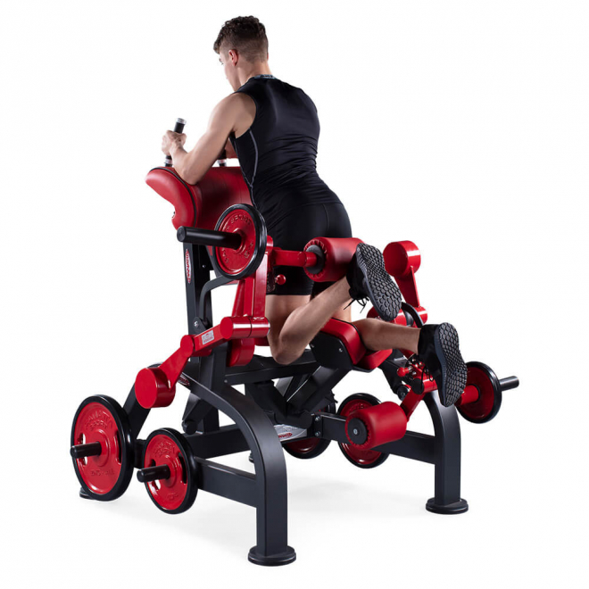 Сгибание ног на коленях предназначено для подколенных сухожилий, таких как полусухожильная, полуперепончатая или двуглавая мышца бедра, с исключительным односторонним выполнением. Высота опорных накладок для локтей позволяет эффективно предварительно растянуть целевые мышцы. Двойные рукоятки позволяют каждому пользователю найти правильное положение для выполнения упражнения. Он выделяется: