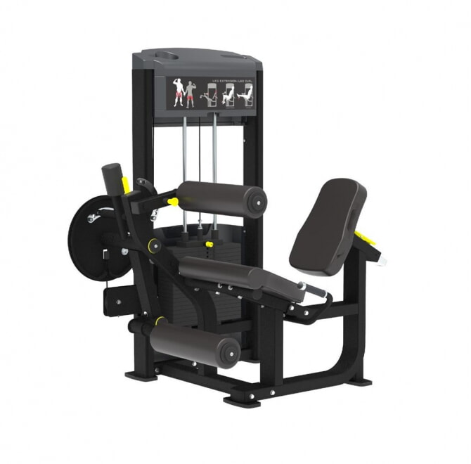 - Сиденье и спинка расположены под углом, что позволяет изолированно тренировать четырехглавую и двуглавую мышцы бедра, квадрицепс и бицепс бедра, не нагружая при этом сухожилия.