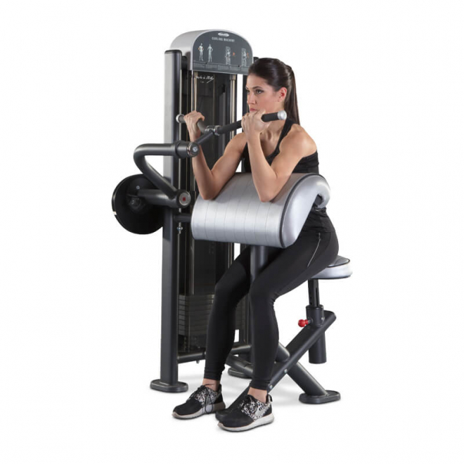 Оборудование серии Fit Evo 1FE051 даст возможность качественно проработать бицепсы. Жесткая фиксация рук обеспечена конструкцией скамьи. Снаряд – модификация скамьи Скотта. Комфортное сиденье регулируется. Рукоятка в данной модели тренажера обеспечит целенаправленность на бицепсы, следовательно, снимает часть нагрузки с предплечий.