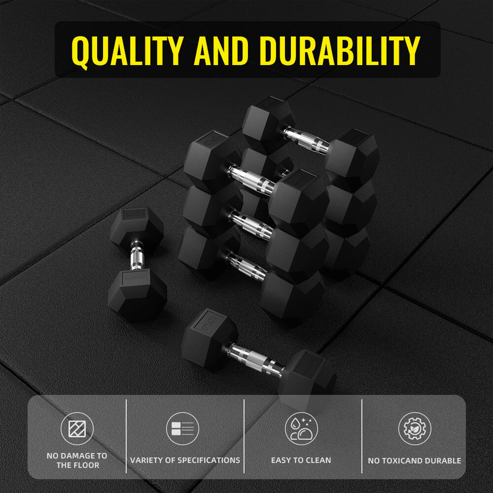 - Высококачественные материалы: Каждая гантеля изготовлена из прочной стали с износостойким резиновым покрытием, обеспечивая комфортное ощущение, устойчивость к выцветанию или повреждениям и способность выдерживать длительное интенсивное использование.