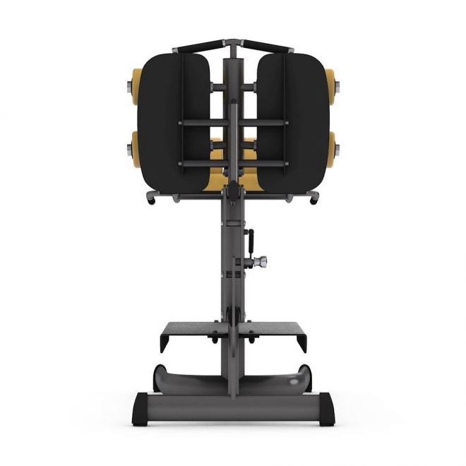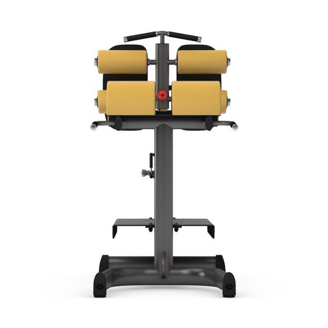 Большая платформа с безбарьерным проходом означает простой монтаж и демонтаж. Регулировка ножной секции с помощью давления газа для легкого конфигурирования высоты и расстояния позиций. Ролики с наклонными ножками упрощают монтаж. Секционные полулунные валики бедер и наколенник обеспечивают оптимальную производительность. Высокостабильная, полностью сварная опорная рама обеспечивает необходимую устойчивость. Эластичное крепление ремня для использования ремней сопротивления.