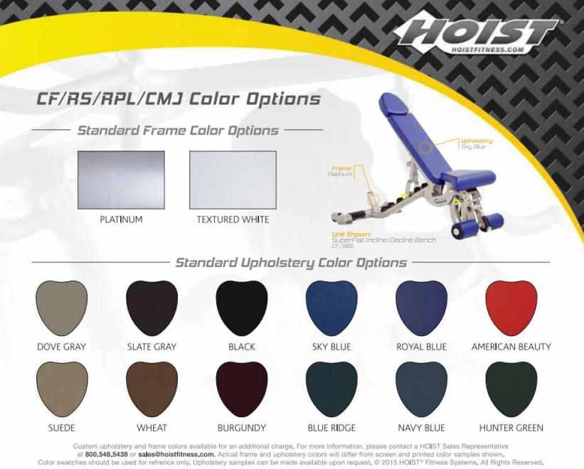 Скамья CF-3550 от компании Hoist имеет восемь положений регулировки сиденья и два регулируемых положения под гриф. Для оптимального распределения нагрузки опорная подушка расположена под углом в шестьдесят градусов.