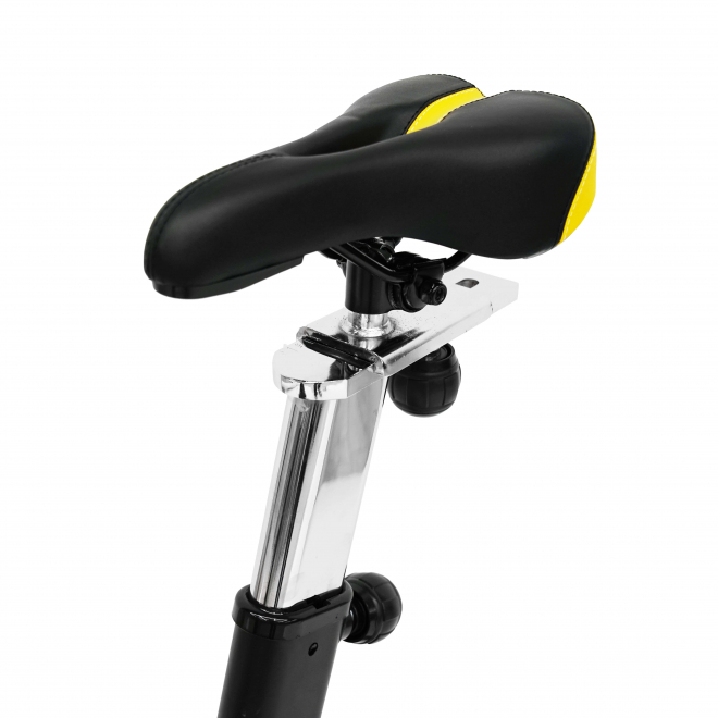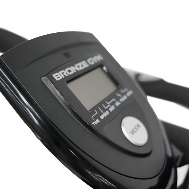 BRONZE GYM INSPIRE отлично проходит так называемый 'Тест на 6 часов' (проверка равномерности распределения нагрузки при педалировании, проводится в положении стоя, как правило, большинство спин-байков 'проваливаются' (скорость увеличивается, нагрузка падает) при движении шатуна из верхнего положения в нижнее). Важнейшую роль в биомеханике играет рама. Мощный стальной профиль из легированной стали с общим весом изделия 53 кг является одним из самых устойчивых среди спин-байков. Рама надежна, не подвержена деформации и отлично защищена порошковой краской от коррозии. Подседельный и рулевой штырь, выполненные из высокопрочного стального профиля с надежным хромированным покрытием, регулируются во всех возможных положениях и подходят для пользователей практически любого роста и веса. На них не остается царапин при смене положения сидения или руля, они долговечны, недеформируемы и абсолютно устойчивы к воздействию пота. Само сиденье наполнено плотными подушками, выполнено в эргономичной форме и аналогично тем сидениям, который используются на спортивных велосипедах.