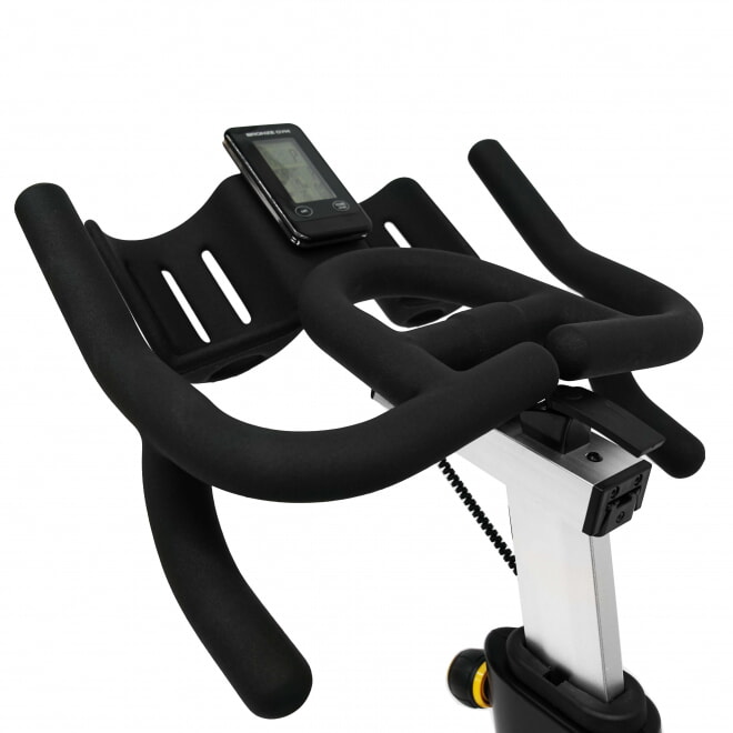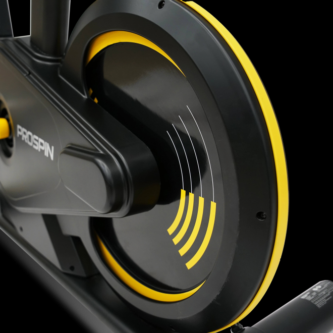 Привод PROSPIN с преднатяжителем и магнитной системой нагружения является самой прогрессивной разработкой в биомеханике спин-байков и обеспечивает самую высокую степень эффективности и комфорта. Усиливает великолепный биомеханический эффект маховик с инерционным весом 20 кг. Абсолютно ровный диаметр и равномерное распределение веса по своей форме. Это еще один плюс в копилку ровного плавного хода и самого высокого коэффициента инерции. Встроенный приемник для беспроводной передачи частоты сердечного ритма, частота которого составляет 5 кГц, необходим нагрудный датчик (приобретается отдельно).