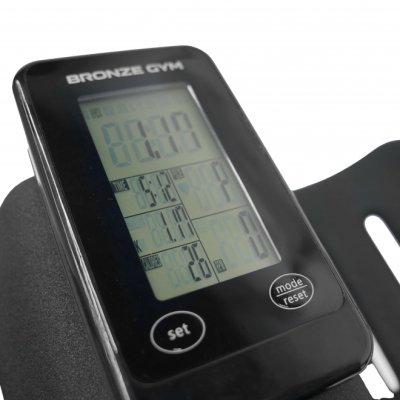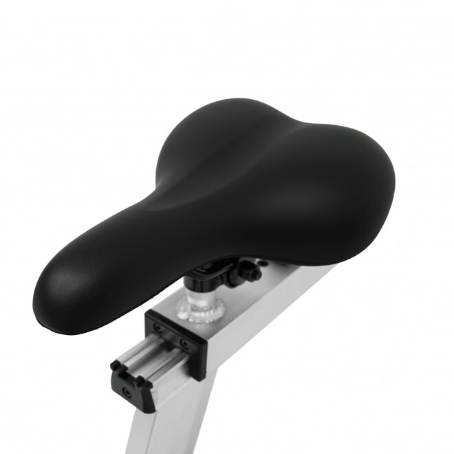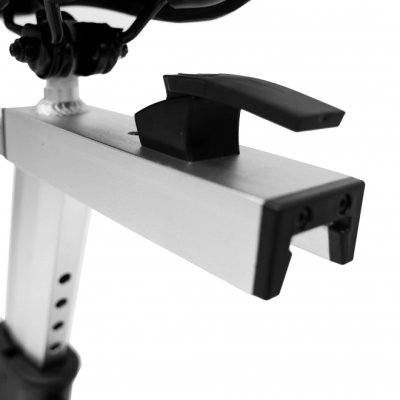 BRONZE GYM PROSPIN отлично проходит так называемый 'Тест на 6 часов' (проверка равномерности распределения нагрузки при педалировании, проводится в положении стоя, как правило, большинство спин-байков 'проваливаются' (скорость увеличивается, нагрузка падает) при движении шатуна из верхнего положения в нижнее). Важнейшую роль в биомеханике играет рама. Мощный стальной профиль из легированной стали с общим весом изделия 61 кг является одним из самых устойчивых среди спин-байков. Рама надежна, не подвержена деформации и отлично защищена порошковой краской от коррозии. Подседельный и рулевой штырь, выполненные из высокопрочного алюминиевого профиля с надежным матированным покрытием, регулируются во всех возможных положениях и подходят для пользователей практически любого роста и веса. На них не остается царапин при смене положения сидения или руля, они долговечны, недеформируемы и абсолютно устойчивы к воздействию пота. Само сиденье наполнено плотными подушками, выполнено в эргономичной форме и аналогично тем сидениям, который используются на спортивных велосипедах.