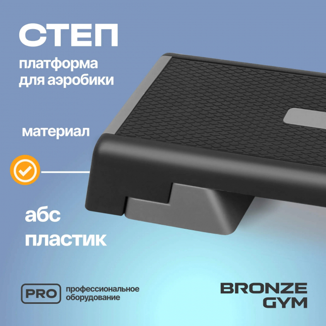 Степ-платформа для аэробики BRONZE GYM BG-FA-SP — профессиональное оборудование для использования в фитнес‑клубах, спортивных центрах и тренажерных залах. Модель рассчитана на регулярные тренировки и подходит для коммерческого применения.
