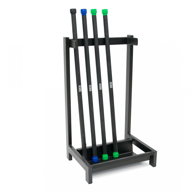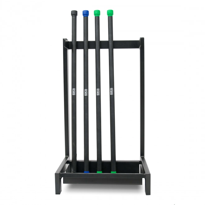 Выполнена в виде сварной конструкции окрашенной порошковой краской, вмещает в себя до 20 бодибаров (гимнастических палок).