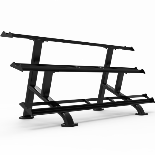 - Трехъярусная конфигурация позволяет разместить до 15 пар гантелей, распределенных по 5 пар на каждом уровне,