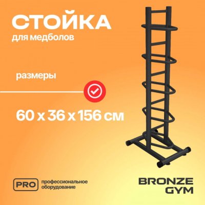 BRONZE GYM BR-1021 - коммерческая стойка для медболов. Каркас оборудования выполнен из профиля 50 мм круглого сечения толщиной 1,5 мм. Имеет 5 секций для размещения. Размер стойки 60*36*156 см.