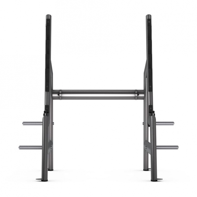 Обеспечивает и поддерживает различные упражнения для безопасной и эффективной тренировки мышц бедра и ягодиц. При этом пять полок на разной высоте, одна запасная и четыре весовых полки обеспечивают как комфортную, так и безопасную тренировку. Благодаря 50 мм пластины подходят для всех стандартных весовых дисков.