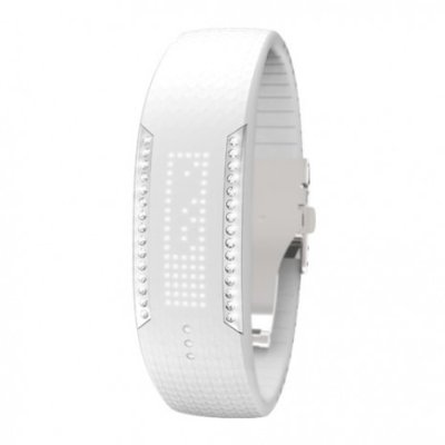 Тисненый браслет из мягкого белого силикона легко подстраивается под ширину запястья, фиксируясь аккуратной металлической пряжкой. Для дисплея выбраны 85 светодиодных индикаторов, которые закреплены отдельно. Включение производится при помощи сенсорной кнопки. Устройство имеет водоотталкивающие свойства, но для плавания не рекомендовано. Пульсометр позволит вам всегда оставаться на связи благодаря уведомлениям, поступающим со смартфона (поддерживается iOS, также планируется запуск на Android). Устройство запоминает периоды сна, сообщает о слишком продолжительных промежутках неактивного времени, отмечая их вибросигналом. Имеется возможность дополнения датчиком Polar H7 для контроля пульса. Браслет можно носить в режиме 24/7, оставаясь всегда в курсе состояния своего организма.
