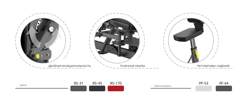 Удобное сидение, эргономичный дизайн, регулируемая нагрузка