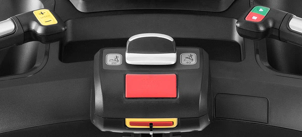 - Датчик автоматической остановки прекращает движение ступеней в случае соскальзывания ноги.