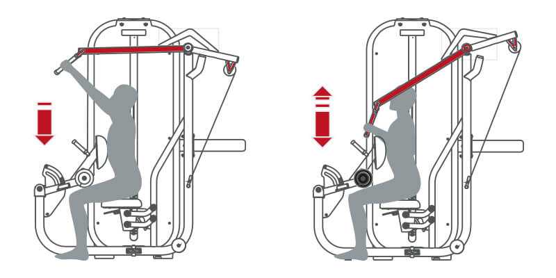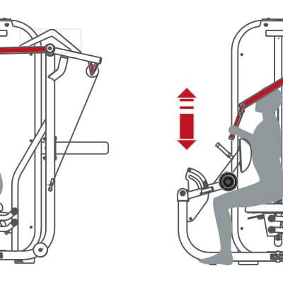 High Row Convergenti предназначен для полноценной тренировки спины благодаря синергии в активации широчайшей мышцы спины, большой круглой мышцы, а также ромбовидных и трапециевидных мышц.