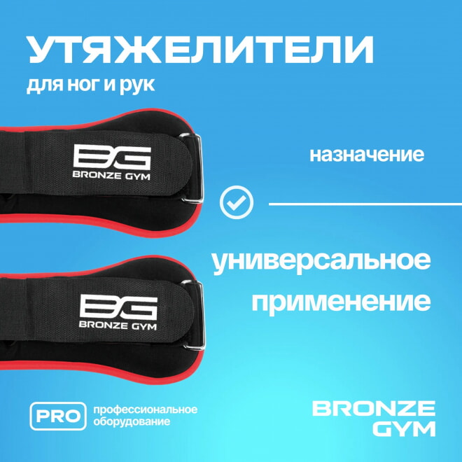 Утяжелители для ног и рук BRONZE GYM BG-FA-WW2 2 кг (1 кг х 2), пара — тренажер коммерческого класса, разработанный для оснащения фитнес‑клубов и спортивных центров. Может использоваться для регулярных тренировок в условиях высокой нагрузки.