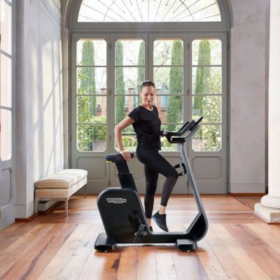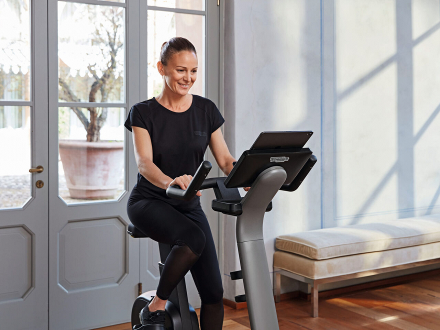 Конструкция с открытым проёмом и удобное сиденье Technogym Cycle обеспечивают беспрепятственный доступ.