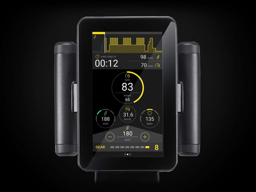 Верный союзник любого велогонщика на самом выматывающем подъеме. Переключая передачи, спортсмены меняют сопротивление для поддержания мощности и темпа и достигают максимальной эффективности. Консоль отображает выбранную передачу и передаточное число в режиме реального времени.