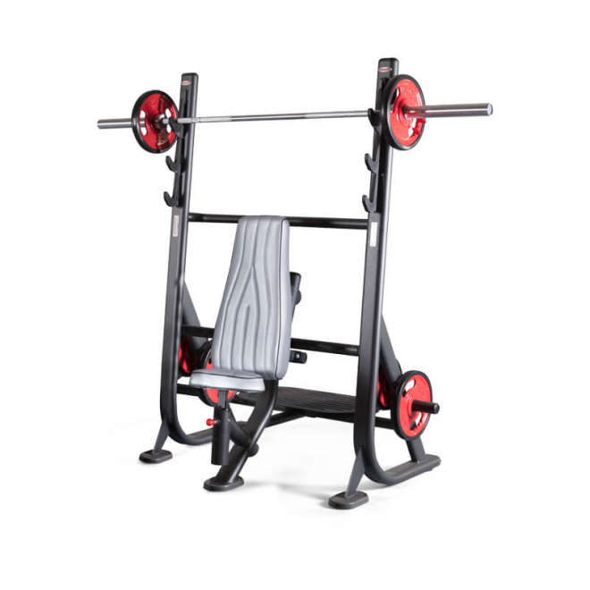 - Конструкция снаряда оснащена тройной опорой для грифа.