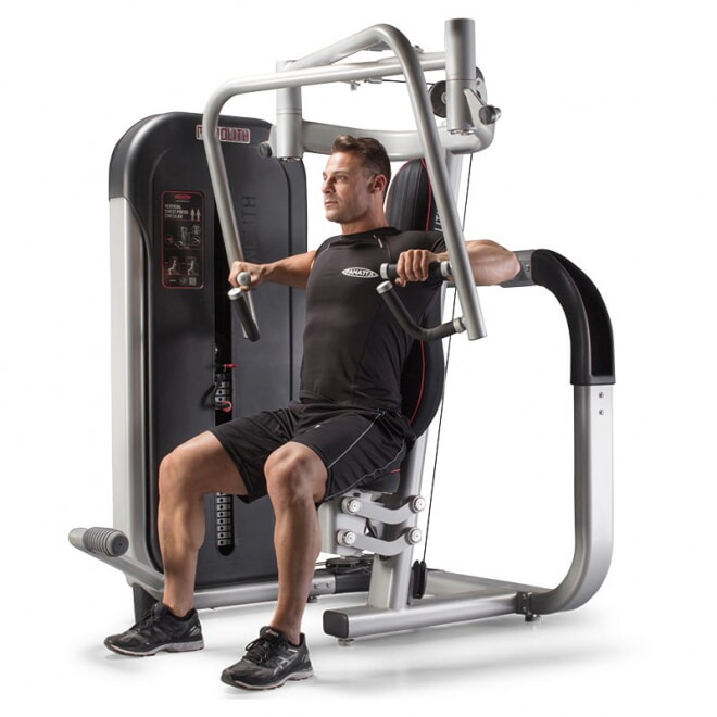 Vertical Chest Press Circular 1MTH033, отличный тренажер для проработки грудных мышц из серии Monolith, от Panatta. Для выбора веса предусмотрен магнитный штифт. Движение круговое. В 1MTH033 есть функция Technical Info, графическая таблица на которой изображен QR-код и ссылка на видео с инструкциями по упражнениям. Прогрессивное увеличение нагрузки обладает шагом в 2,5 кг. Заниматься с комфортом позволяют рукоятки с мульти-хватом, старт движения облегчен. Плавную регулировку высоты сидения обеспечивает газлифт, а возможность выполнять упражнения одной рукой, а также двумя руками одновременно или поочередно, предоставляют независимые рычаги. Кожух из гофрированного ABS пластика защищает весовой стек. В тренажер встроена подставка для предметов. Цвет обивки по умолчанию - красный, другие цвета доступны опционально.