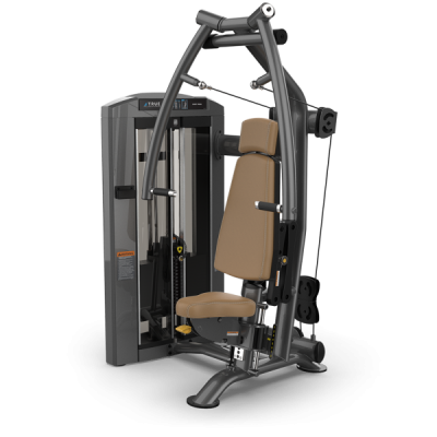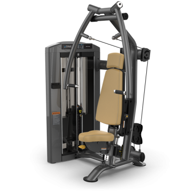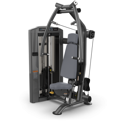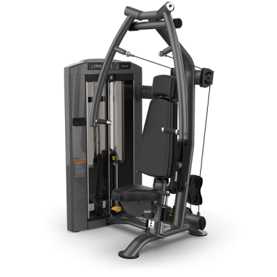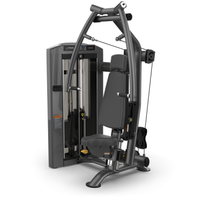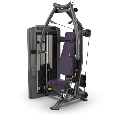 Двойные шарниры над головой тренажера SPL-0900 серии Palladium позволяют рукояткам перемещаться в легком восходящем движении для максимального задействования мышц, в то время как односторонние рычаги для пресса сходятся под углом 25 градусов перед пользователем, а регулируемая задняя подкладка обеспечивает полное сочленение плечевого комплекса.