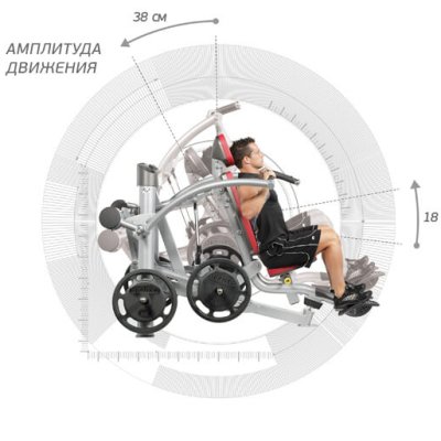 - Исходная позиция — рычаги тренажера расположены перед грудью, затем при подъеме рычагов наверх происходит перемещение рукояток назад в позицию «над головой», таким образом, происходит имитация естественного движения, возникающего при жиме от плеч с гантелями,
