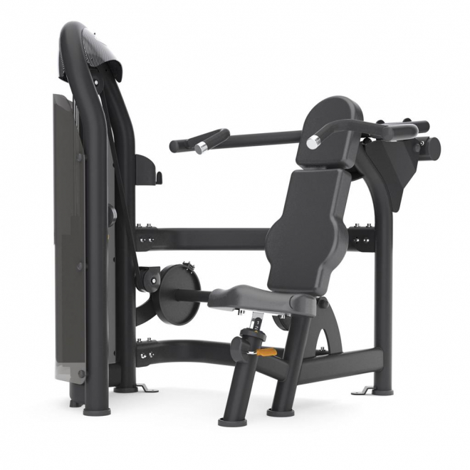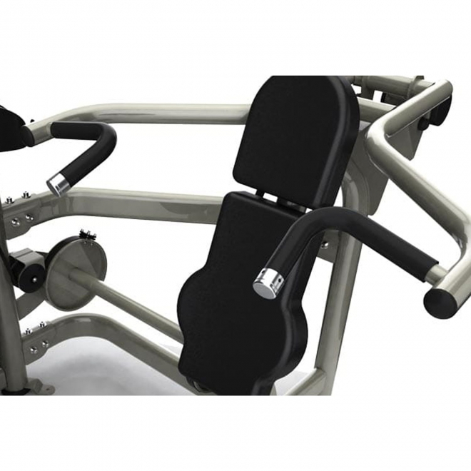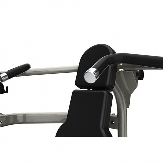 - Рычаг для жима оснащается грифом и нейтральными захватами, позволяя работать в любом режиме с учетом предпочтений или анатомических ограничений пользователя.